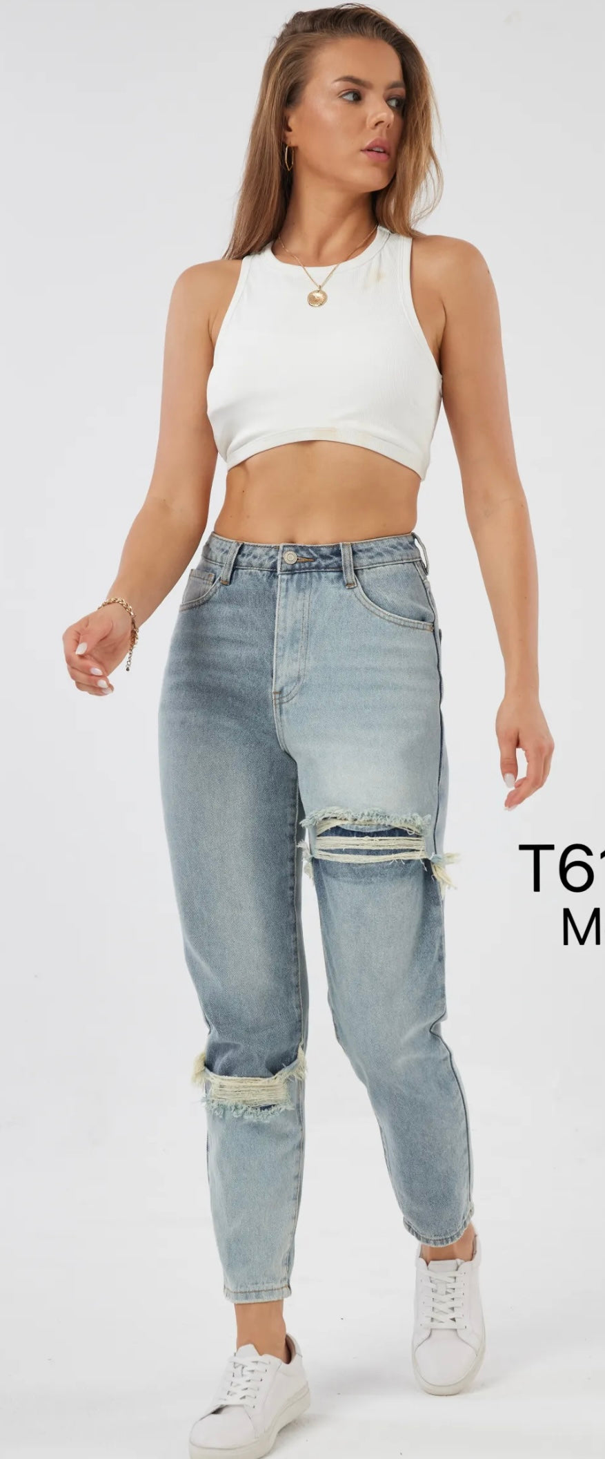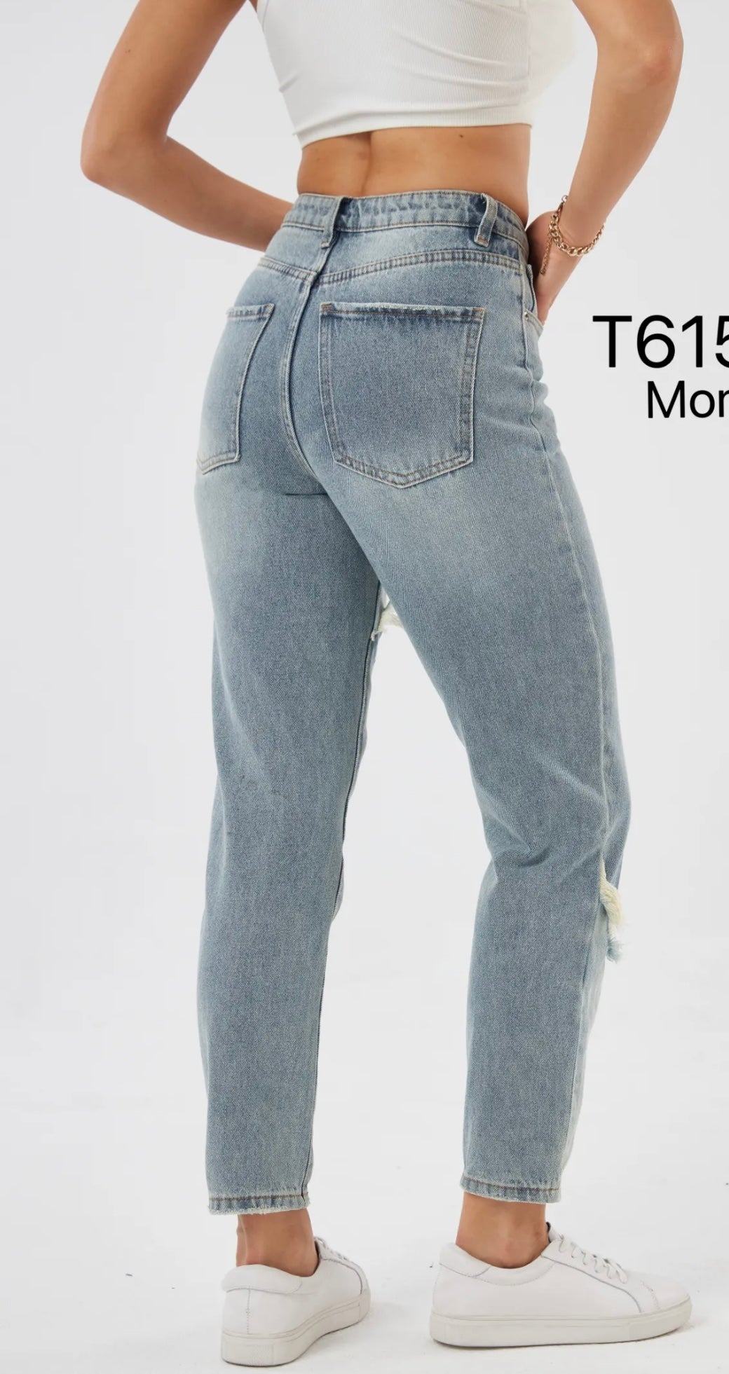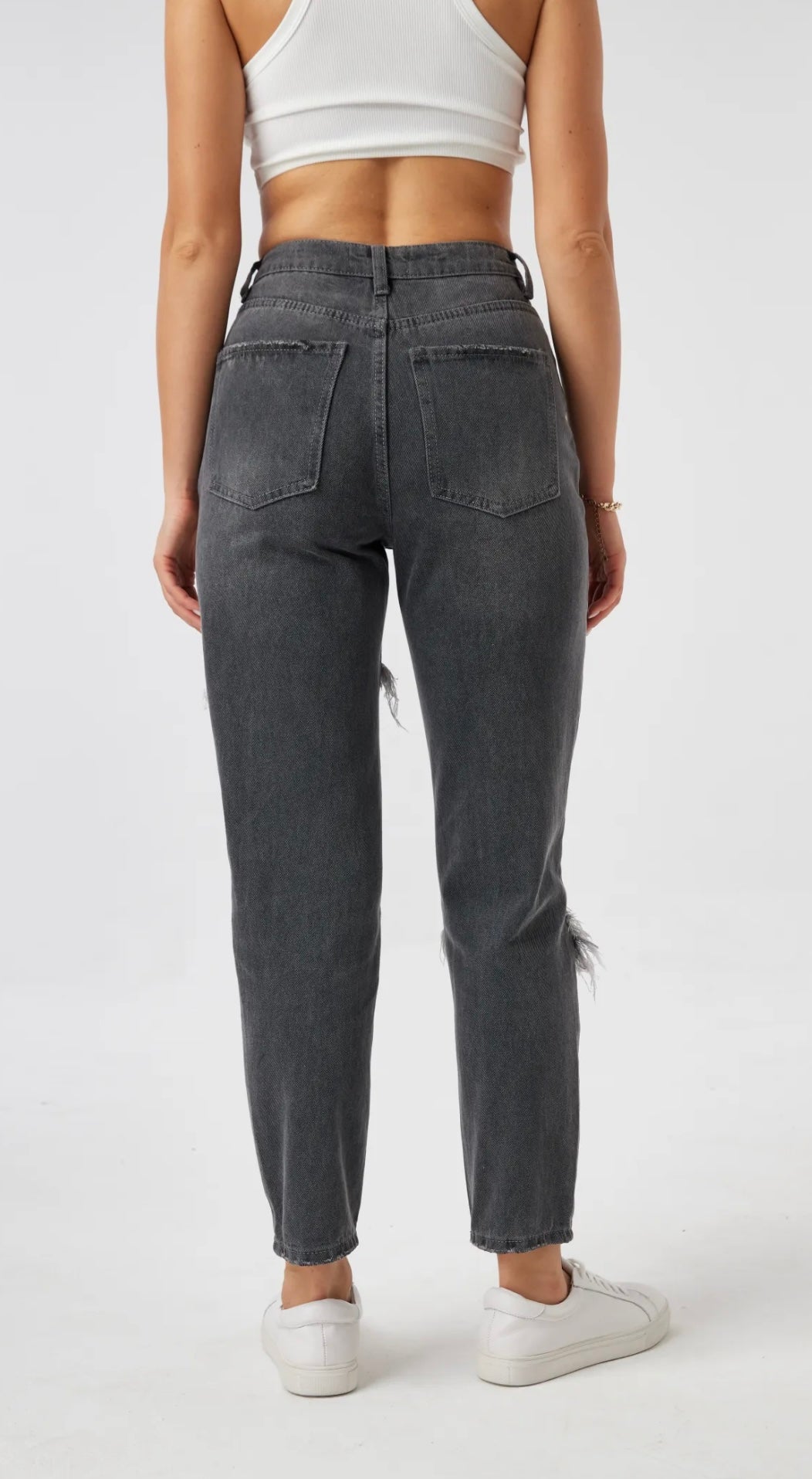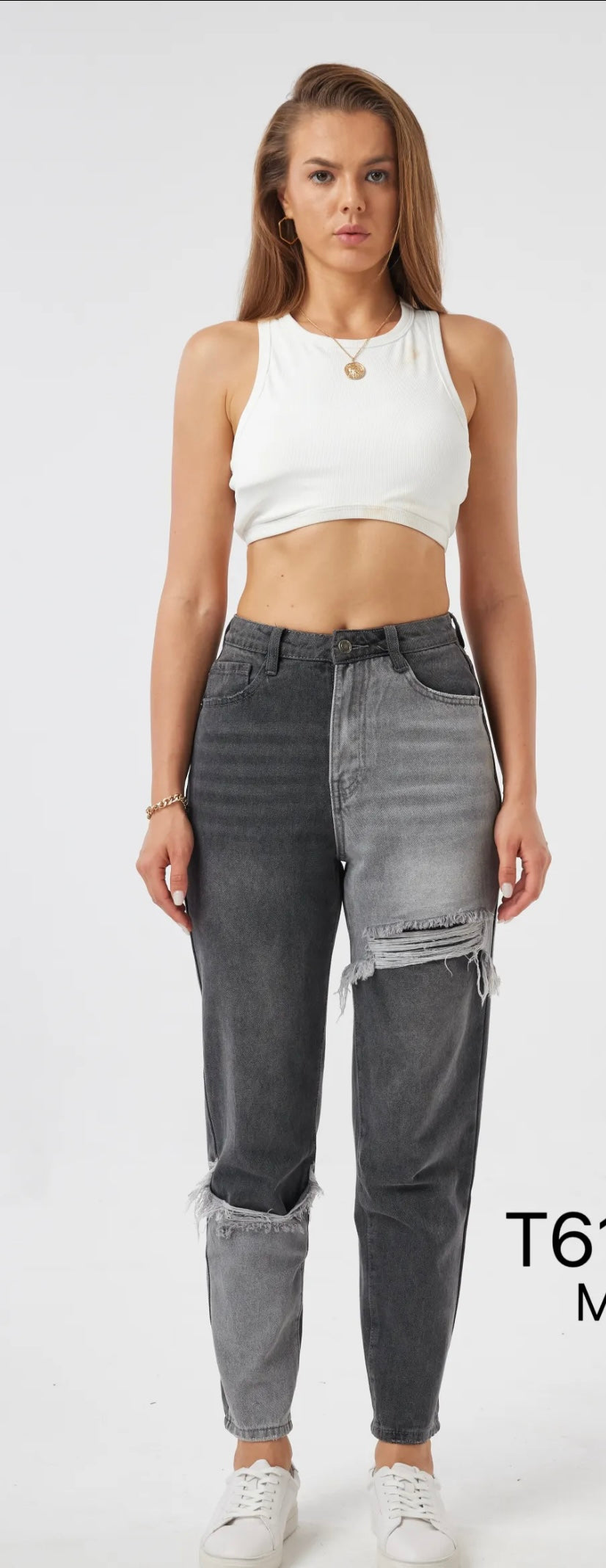 Jean bicolore destroy, gris clair Effet, usé, zone déchirée avec des bordes effiloché sans montrer la peau ,coupe droite, ajuster confortable, stylée, fermeture avec bouton et un petit peu classique idéal avec un T-shirt blanc, over size ou une chemise pour un style streetwear chic