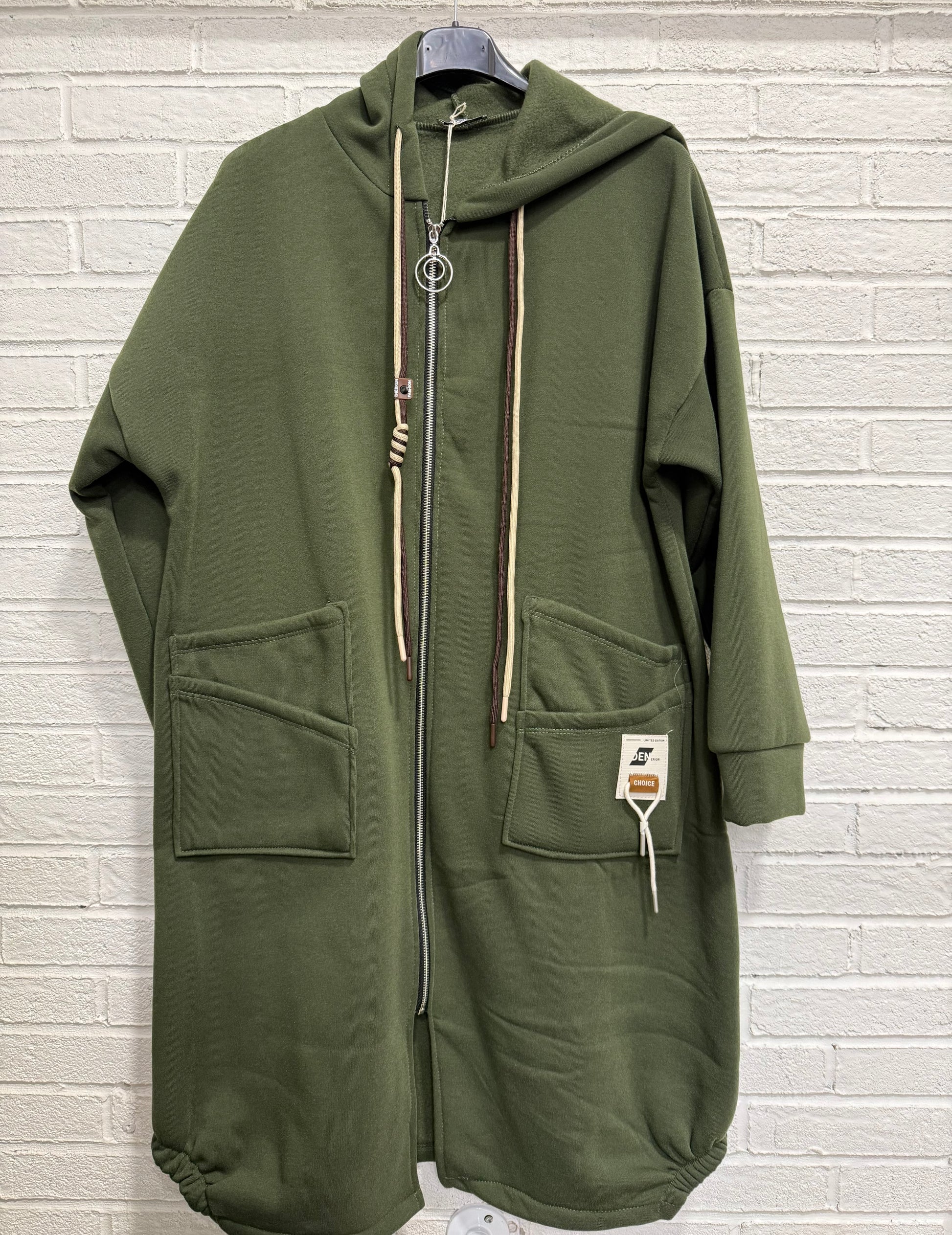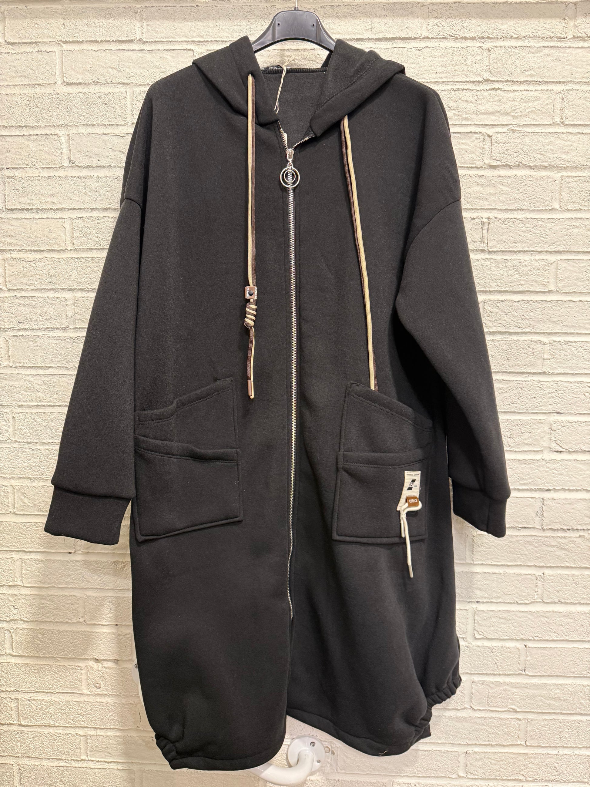 Long pull, confortable et chaud, À fermeture éclair, avec une capuche et deux poches sur le côté. Disponible en plusieurs coloris. Taille unique